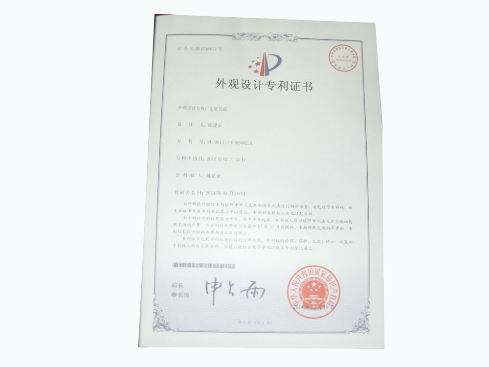 书桌外观设计专利证书-(2)